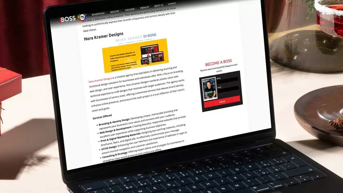 “In a world of cookie-cutter templates and one-size-fits-all strategies, Nora Kramer Designs has carved out a niche by putting client relationships, brand authenticity, and results-driven design at the forefront,” BOSS Magazine noted in their feature.